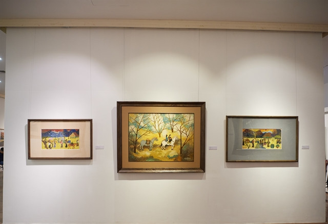Some of 50 paintings at the exhibition are highlights from his long and distinguished career with a diverse theme focusing on daily life of ethnic groups in the northern mountainous region, landscapes, sketches, cinema posters and a set of seven sơn mài (lacquer) paintings.