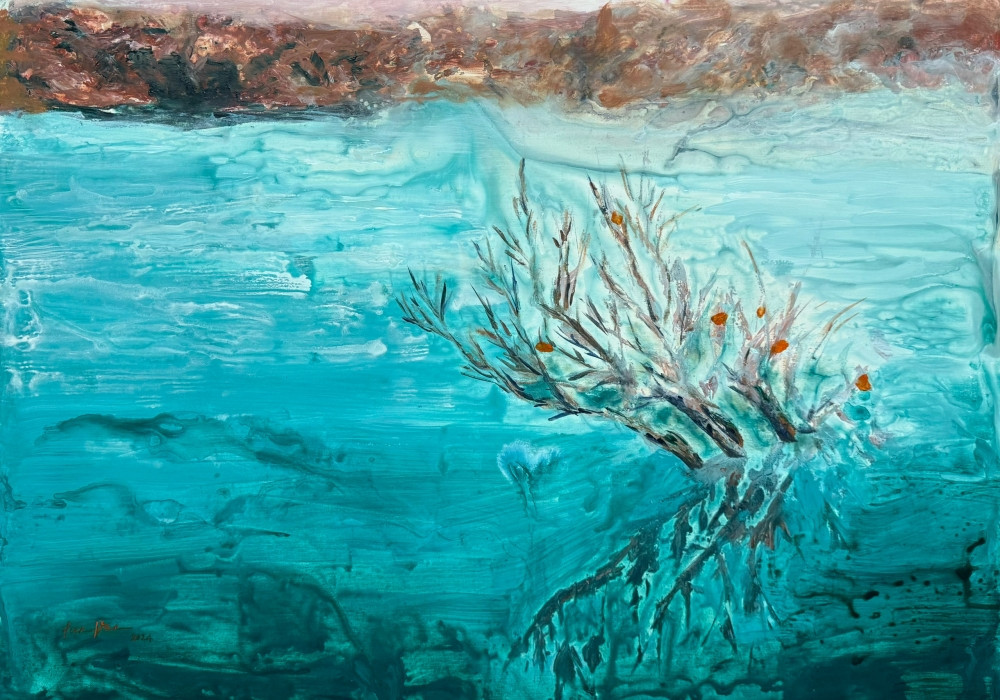 Van Dieu Lien, also known as Lien Van, uses her paintings as a vast sky to explore moods with contrasting colors. Her art often presents a quiet elegance through somber hues, sometimes offering a deep, distant gaze that exudes a sense of freedom. Lien Van's technique involves blurring details and highlighting key elements, creating a three-dimensional space with dancing color blocks that evoke a magical, ghostly atmosphere.