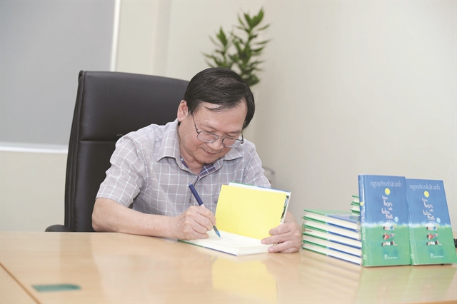 Nguyen Nhat Anh signs the book Being Friends with the Sky at Culture & Sports newspaper's head office in Hanoi. The book won him the Grand Prize at the Dế Mèn Award 2020 to honour works for children. Photo courtesy of Thể Thao Văn Hóa |