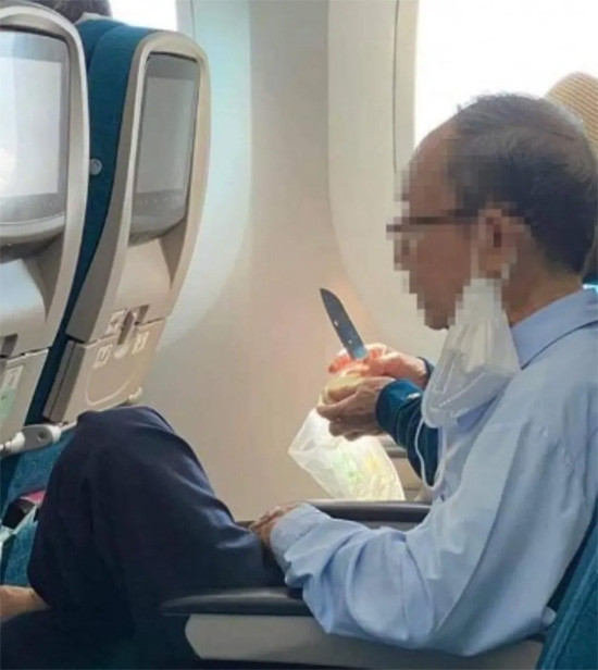 Earlier, a video made the rounds on social media showing an elderly couple – passengers of Vietnam Airlines flight numbered VN208 en route from HCM City to Hanoi’s Noi Bai Airport early Monday morning – producing a knife of about 20cm to peel fruit.