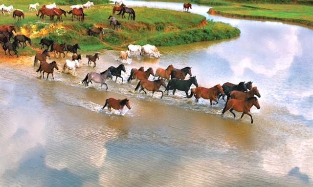 | Horses galloping at Bá Vân Hill. Photo nongnghiep.vn |