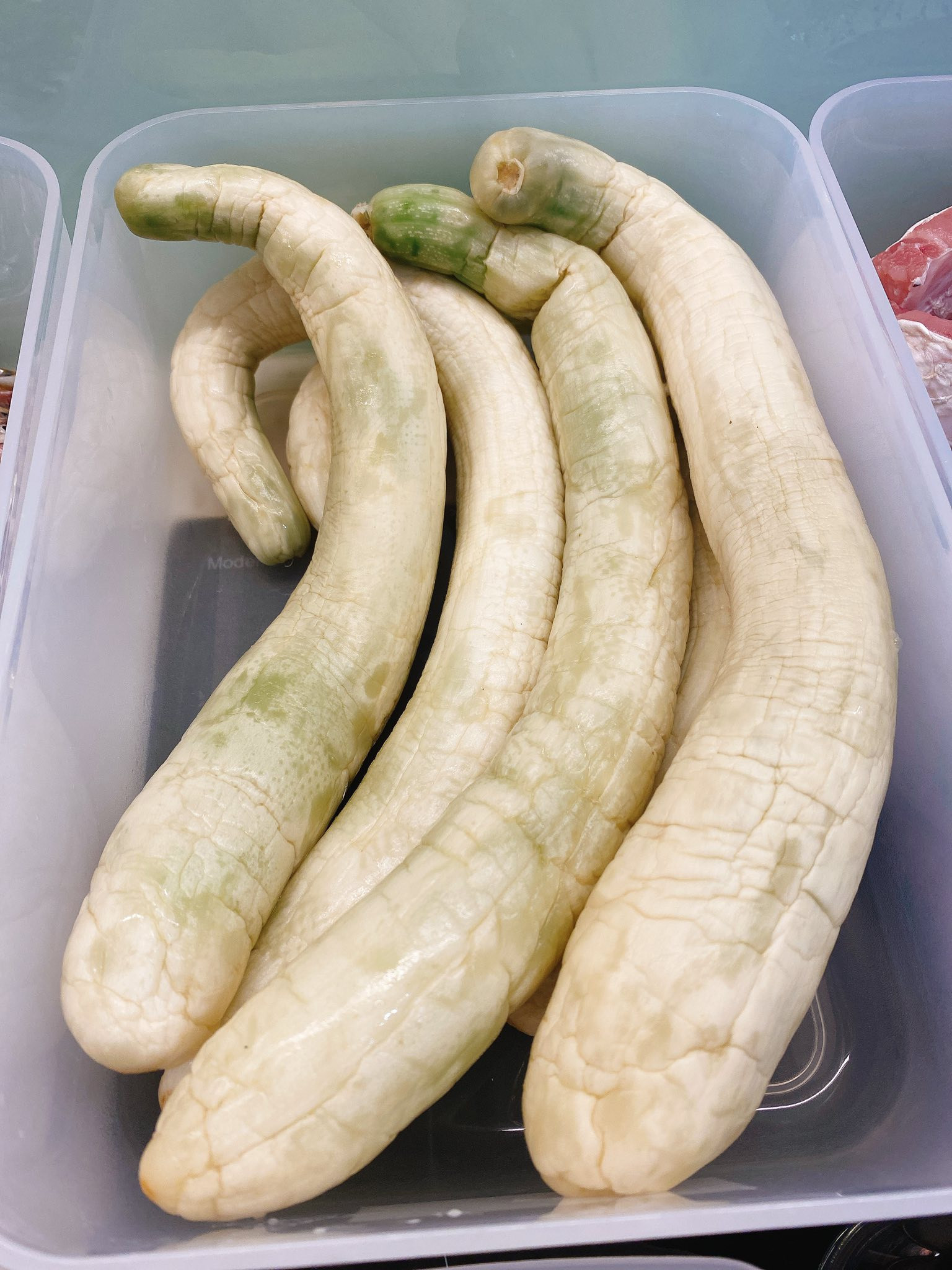 In Que Vo, pickled dua gang comes in two main styles: regular and pressed (or flat). Both involve pickling the whole fruit, resulting in a translucent white color.
