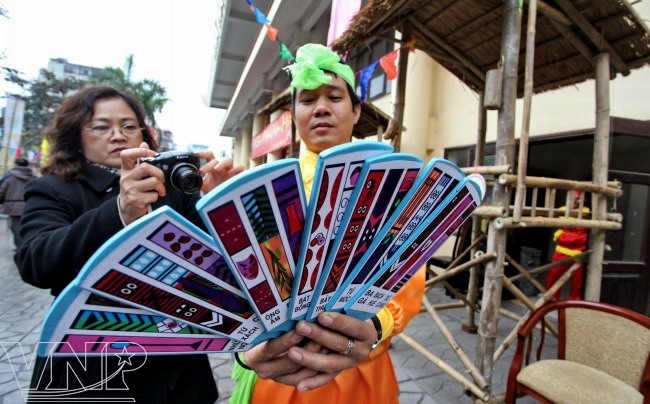 ![]() The umpire must have the ability to improvise quickly and humorously. ![]() Drumbeats create an exciting atmosphere at the festival. ![]() Bai Choi artists in Binh Dinh perform together. ![]() A set of Bai choi cards. ![]() Announcing the name of a card which has the same words as in the song. ![]() Awards for the winners. ![]() A reward of wine for the winners ![]() Players sit in huts built with bamboo. ![]() Binh Dinh Bai Choi Group performs at Kim Ma Theatre in Hanoi. |