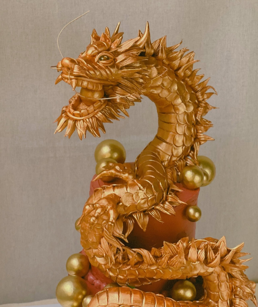 Despite her experience with cake decoration, the dragon challenged her like no other project. The need for lifelike clarity and dynamic expression pushed her to stay highly focused.