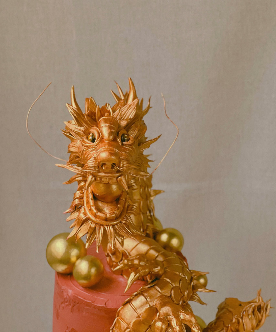 To create the dragon’s form, Linh first practiced drawing and shaping it on canvas using a mixture of sugar and egg whites.