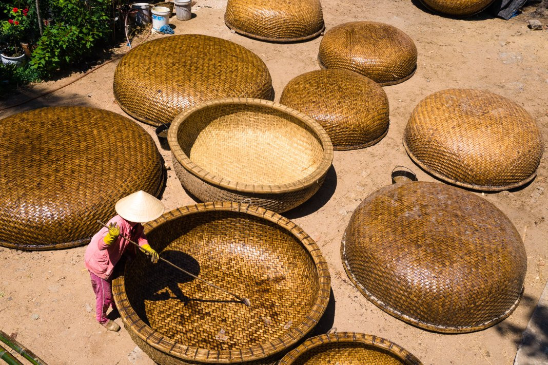 In the province’s Tuy An District, it is easy to see basket boats left along the roads. The boats are made by hand using many processes that require high precision.