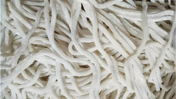 Explaining the name of the dish, local vendor Le Thi Ty, who has been selling the dish for more than two decades, said she chooses special rice that is medium dry and not too soft. The rice should be soaked in cold water for four hours, then ground into a wet dough and kneaded well before using a glass bottle to roll it into thin slices. She then uses a knife to cut them and puts them into a pot to boiling water for a few minutes until they floats.