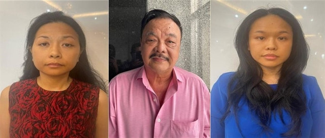 | Trần Quí Thanh (centre) and his two daughters Trần Uyên Phương (left) and Trần Ngọc Bích (right). — Photo courtesy of the police |