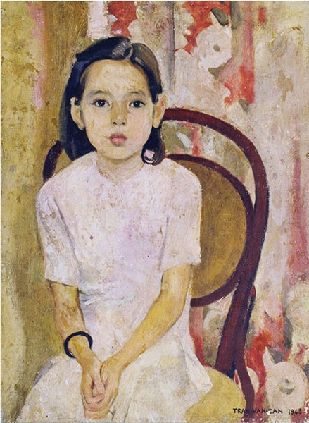 Among them are five artefacts that became national treasures in 2013, including the statue of Quan Âm (Bodhisattva Avalokiteshvara) originating from the Hoi Ha Pagoda in Vinh Phuc Province, the Statue of Queen Trinh Thi Ngoc Truc originating from Mat Pagoda in Thanh Hoa Province, oil painting Em Thúy (Little Sister Thúy) by artist Tran Van Can (1910-1994), the oil painting Hai Thiếu Nữ Và Em Bé (Two Girls and a Child) by painter To Ngoc Van (1906 - 1954), and a lacquer painting Kết Nạp Đảng ở Điện Biên Phủ (Party Admission Ceremony in Điện Biên Phủ) by painter Nguyen Sang (1923-1988).