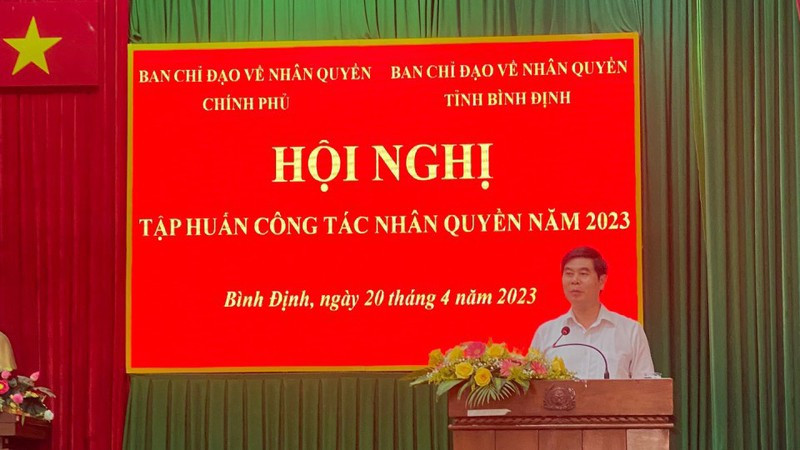 The training session had the presence of Mr. Nguyen Van Ky - Deputy Chief of the Office of the Government’s Steering Committee on Human Rights; Ms. Tran Chi Mai - Deputy Director of the Department of International Cooperation under the Committee for Affairs of Ethnic Minorities; Mr. Lam Hai Giang, Vice Chairman of the People's Committee of Binh Dinh Province, Head of the Provincial Steering Committee for Human Rights, and Colonel Ngo Cu Vinh, Deputy Director of the Binh Dinh Provincial Public Security Agency.