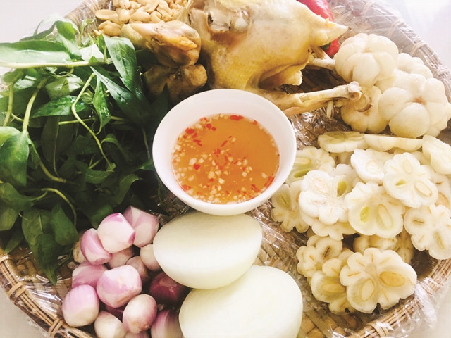 | Ingredients needed to make the famous mangosteen chicken salad. VNS Văn Châu |