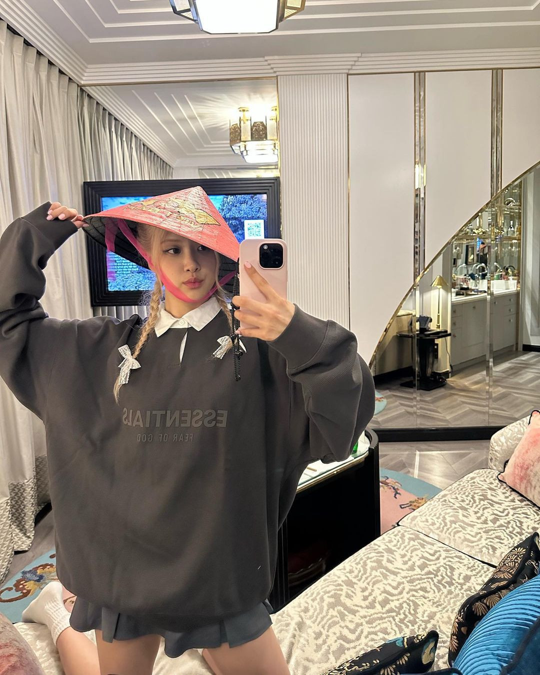 Jennie's somewhat tired moment backstage. She had to use a head pack. However, on stage, Jennie still happily sang and enthusiastically interacted with the audience.Jisoo posted a selfie backstage during the nights in Hanoi.She said that she had a good time in Vietnam which she had visited for the first time. “I got a lot of energy from V BLINK,” she wrote.BlackPink's eldest sister also posted a picture at their hotel.On her page, Rosé showed her appreciation and delight at meeting her V-Blinks. “I’ve been waiting for this day so much… Tôi yêu bạn, Vietnam. I cannot wait to be back,” she wrote.BlackPink members said they all loved the Vietnamese conical hat.