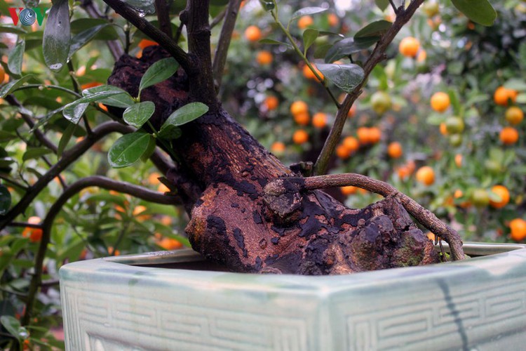 A local gardener in Tu Lien village notes that his garden is currently offering several bonsai kumquat trees which come in a variety of different pots shaped like rats, dragons, and waterfalls which meet the demand of customers for Tet. Each bonsai kumquat tree costs between VND500.000 and VND4 million with customers being able to rent some ancient kumquat roots at a price of VND10 million each.