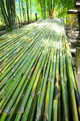 After harvesting, nulgar bamboo trunks need to be straightened because in their habitats, the bamboos are bent because of their extreme length.