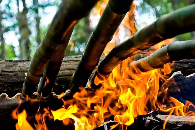 At home, the trunks are parched for bending. It takes workers from two to three minutes to make a nulgar bamboo trunks become straight.