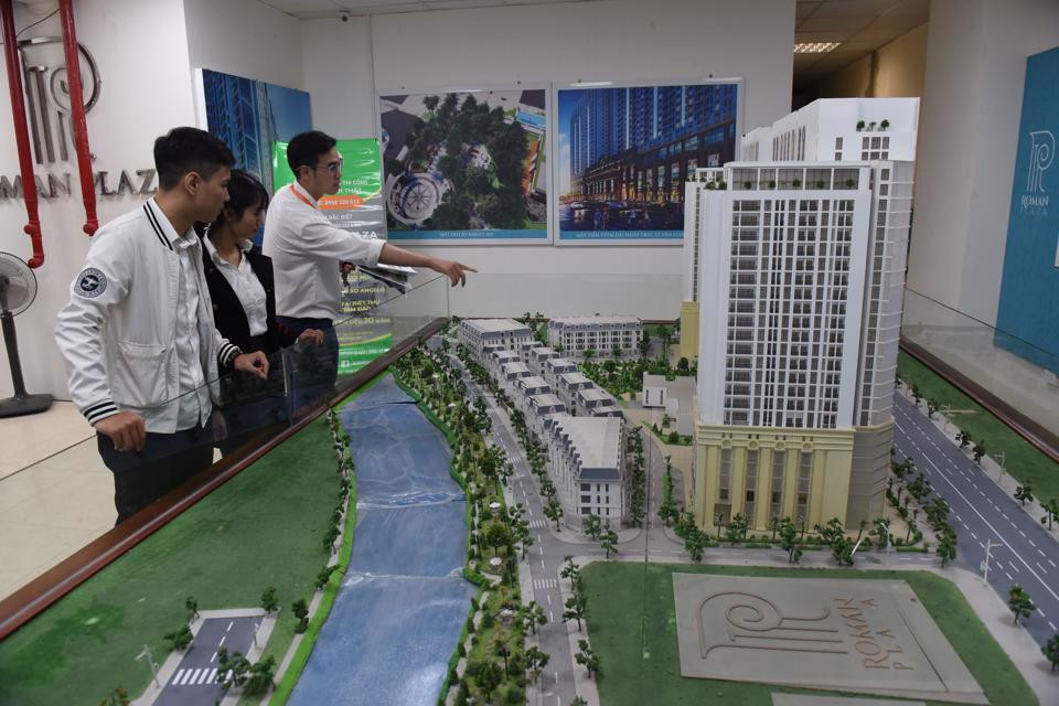 | Â Buyers look at a property project in Hanoi. Photo: Cong Hung |