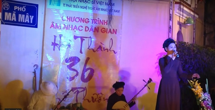 Another Hat Xam or Xam singing spot that is familiar to many tourists is the folk music performance stage in front of Dong Xuan Market, organized by the Vietnam Center for Musical Arts Development.