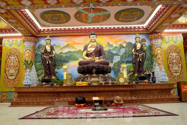 Khai Nguyen Pagoda was first built in the first half of the 16th century, but seriously deteriorated in 1990.In 2003 the site was rebuilt before reopening again for monks and nuns, as well as Buddhist followers from across the country.In 2015, Venerable Thich Dao Thinh began to erect a statue of Amitabha Buddha, featuring a message of world peace.The statue stands at 72 metres high and spans an area of 1,200 square metres.Construction of the statue has been suspended for two years due to the COVID-19 pandemic. The project is now underway and is expected to be completed in the next few years.The current ceiling of Khai Nguyen Pagoda is being elaborately painted by many artists.Thousands of small Buddha statues are all cast by monks in the pagoda.A view inside Khai Nguyen Pagoda.Each Buddha statue has a different meaning.The upgraded pagoda is expected to welcome many Buddhist followers nationwide.The statue of Amitabha Buddha is anticipated to be the tallest in Southeast Asia after completion.