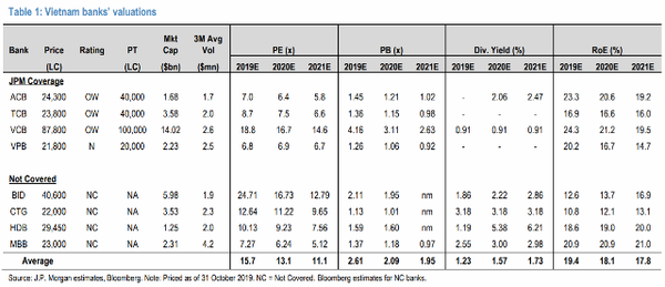 JP Morgan has pointed out a number of risks related to investments in Vietnamese banks.