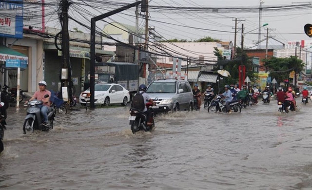 Can Tho City saw heavy rain and strong winds at about 3pm on Saturday. It lasted for about an hour and submerged a number of streets. The rainfall measured at more than 45mm. — VNS
