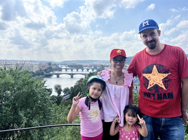 | The family is pictured in Praha, Czech Republic in September. Maxime said travelling is beneficial to both of his daughters. — Photo Facebook Gia Đình Phượt |