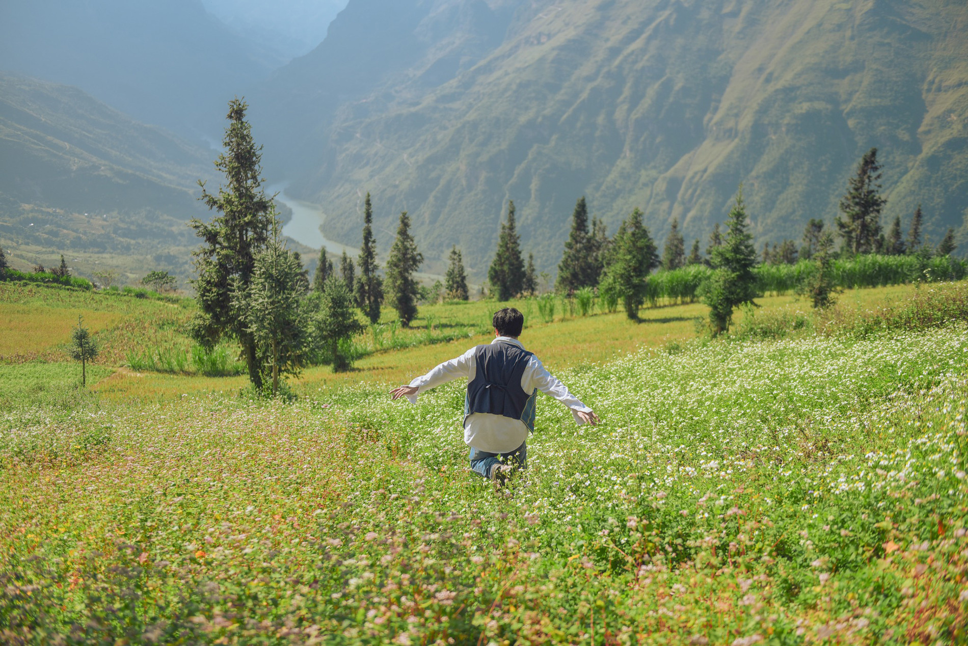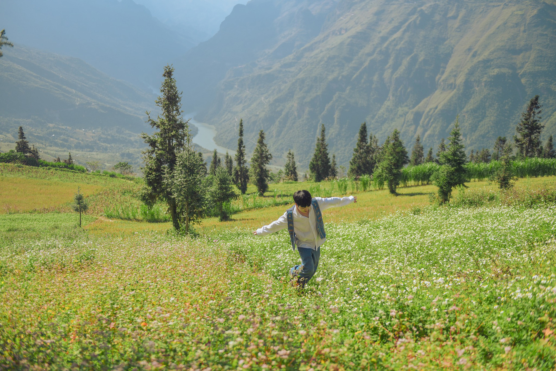 With only a short two-day, one-night trip, Sang focused on visiting a few key attractions. Besides Suoi Thau Plateau, he explored Bac Ha in Lao Cai, where he admired fields of pink grass and blooming buckwheat, and sampled local dishes like black chicken hotpot, fried stream fish, and red hand-pulled pho.