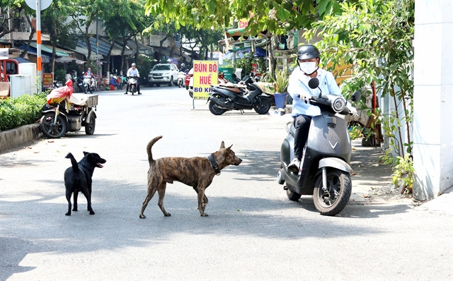 | Dogs roam freely in District 4 in HCM City. — VNA/VNS Photo Đinh Hằng |