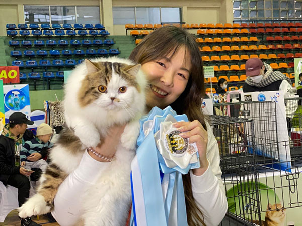 The Best Kitten In Show belonged to a tortoiseshell female Persian cat from Thailand; a black golden shaded British shorthair from Thailand won the Best Bred Cat in Show title, while a Persian calico cat from South Korea won the Best Premiership in Show title.
