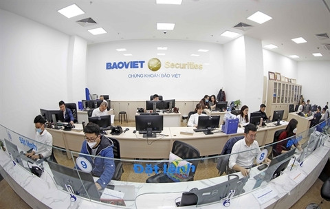 Traders work in a Bao Viet Securities office. — VNA/VNS Photo