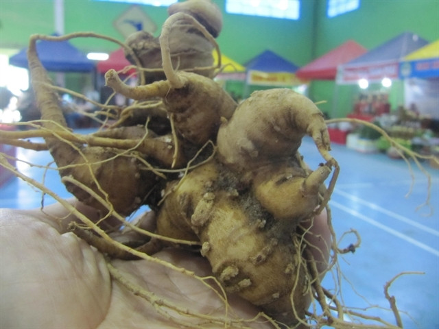 | A Ngọc Linh ginseng root for sale at a market in Nam Trà My District in the central province of Quảng Nam. The province has asked for a law on Vietnamese ginseng for sustainable development and brand protection. VNS Photo Công Thành |