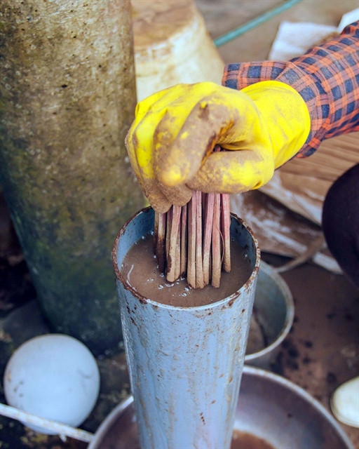 "Making a stick of incense is complicated, taking many stages," said Hoa. "The incense maker should ensure that the powder is distributed evenly across the stick. The incense is then dried under the sun so it can be preserved for several months without being spoiled by mould."