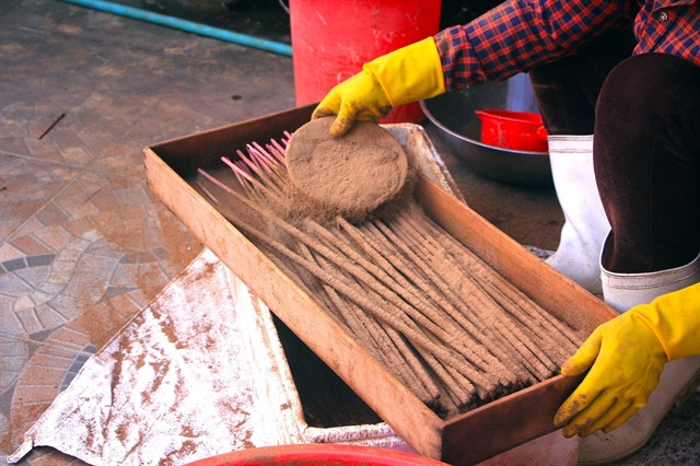 All stages are done by hand. This is a unique feature in the production process that people in Quyết Thắng Village have followed and maintained for years. The village has been recognised for its traditional handicraft of making incense. — VNS