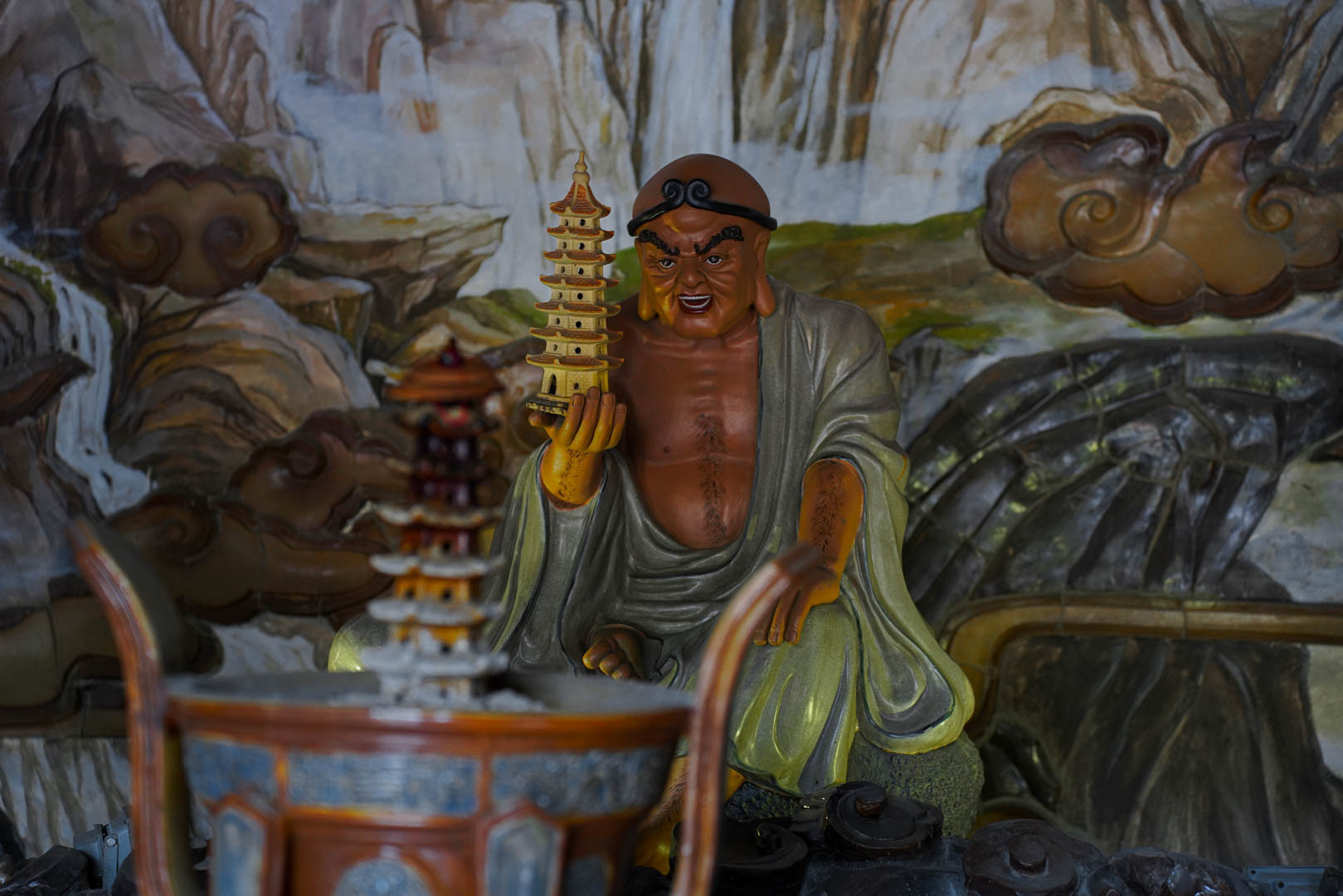 Inside the Tam Bao hall are two 2.5-meter-high guardian statues, each cast from a single ceramic block. These rare, one-of-a-kind pieces took artisans a full year to complete.
