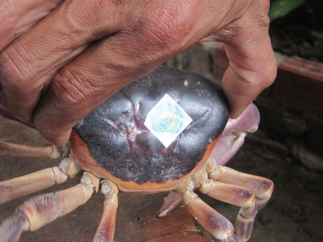 | A fresh water crab is sealed with sustainable brand in Chàm Islands. Local fishermen join sustainable exploitation of the crab for longer development of the ecological system of the islands. VNS Photo Công Thành |