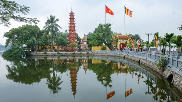 Located on an eastern island of West Lake in Tay Ho district, Tran Quoc Pagoda is the oldest pagoda in Hanoi at more than 1,500 years old. The pagoda is distinguished by its natural landscape, historical and architectural values.