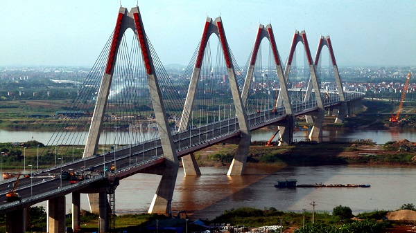 Nhat Tan bridge runs the length of 8.9 kilometres over the Red River and has five spans, representing the capital's five ancient gates.