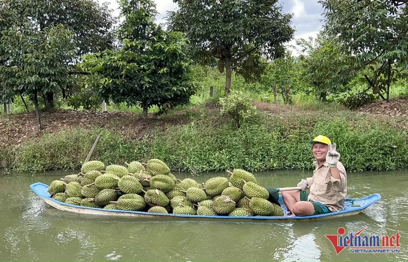 In Phong Dien district in Can Tho, farmers are harvesting durian. Farmers are happy as they have a bountiful crop and can sell at high prices. ri6 durian is collected by merchants at VND40,000-50,000 per kilogram. With that price, farmers can make a profit of VND20,000 per kilogram.