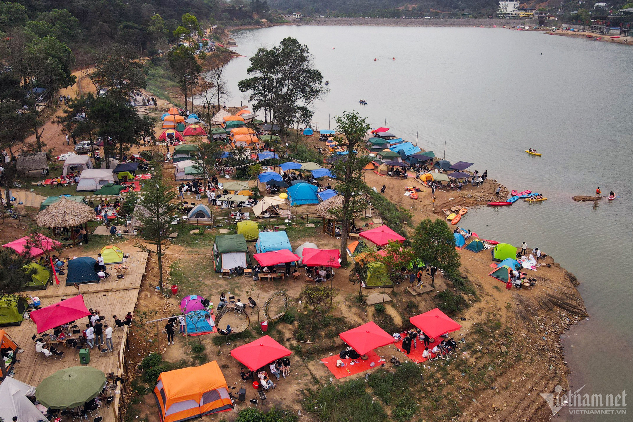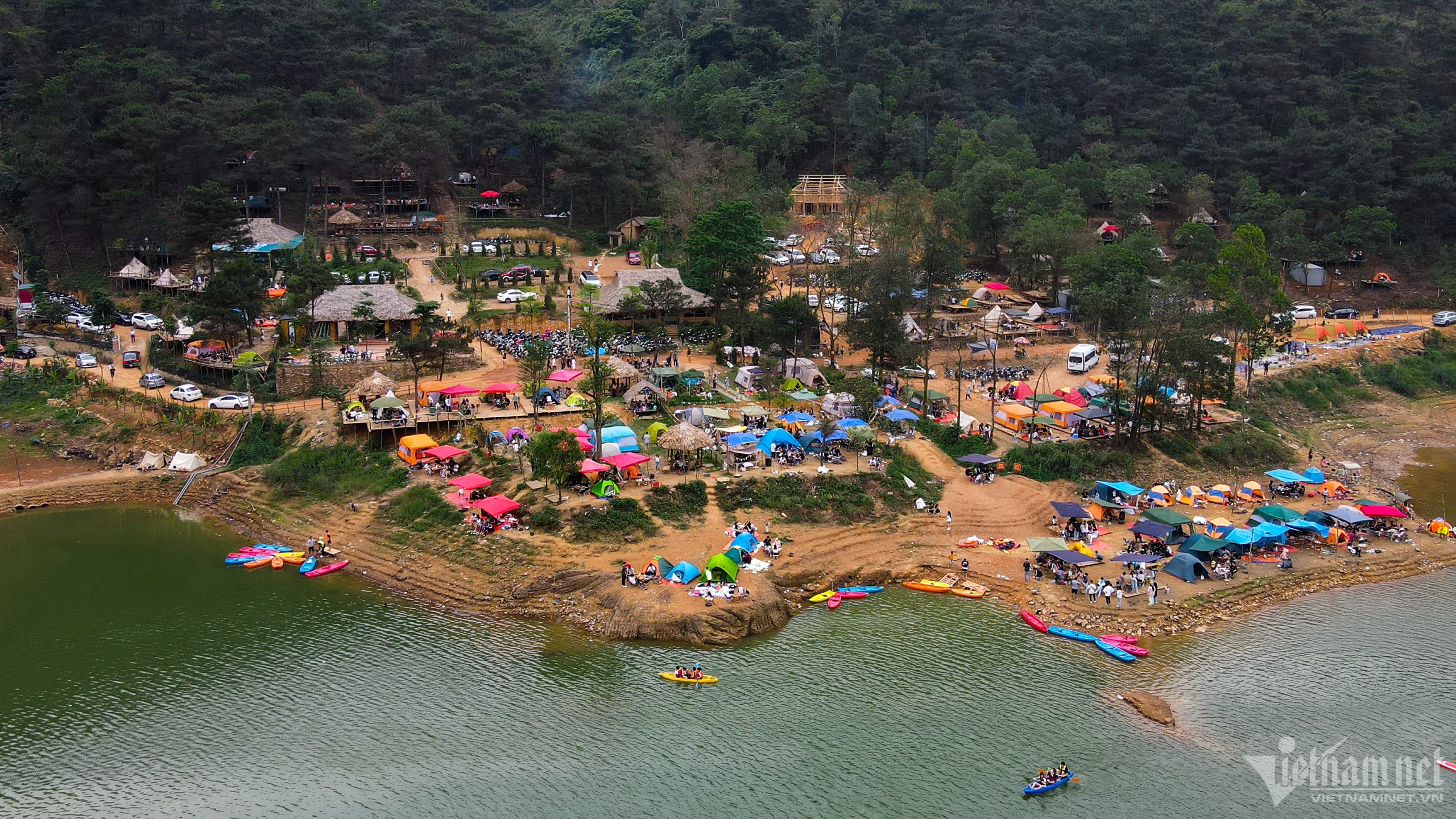 Tourists can climb Ham Lon Mountain or visit Nui Bau lake before climbing. The lake is next to the mountain’s foot, among green pine trees. The pristine beauty here contributes to the lake’s attraction.
