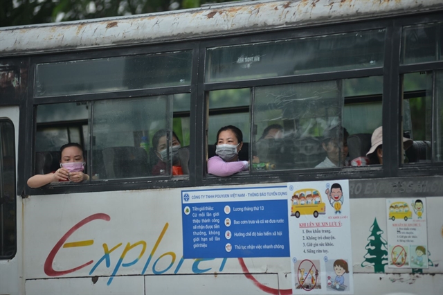 A coach transporting labourers between HCM City and another nearby province. Starting from October 13, coaches can resume transporting passengers between HCM City and other provinces. — Photo baotintuc.vn |