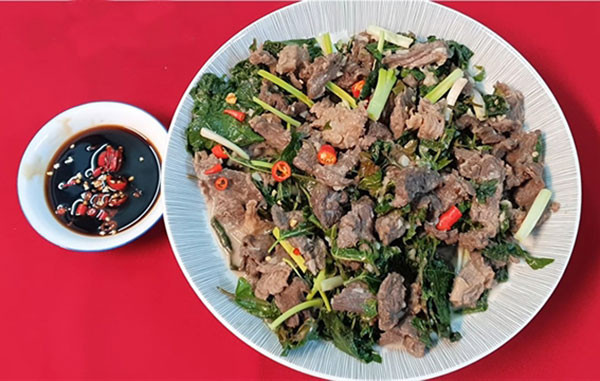 Buffalo meat or beef is sliced into thin pieces and marinated with garlic, onion, chilli and some salt. After about 15 minutes, the meat should be stir-fried with some coconut cream to create a sweet and fatty flavour. The dish can be served with either steamed rice or bread.