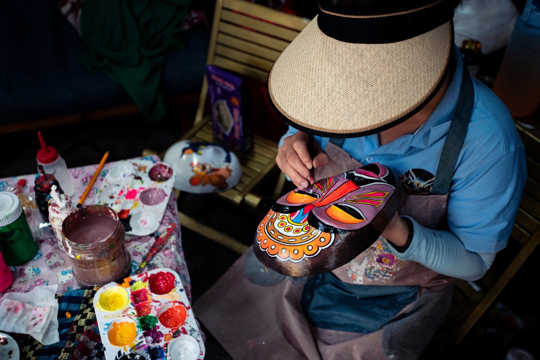 The masks are made of paper arranged in many layers and bonded by powder glue. It takes time to make a timing mask that can be a character from tuồng cổ (classical Vietnamese opera) or a modern character. Besides being used as artists’ costumes, masks are also seen as cultural gifts.