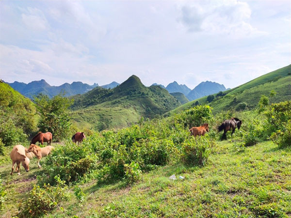 “Passing through a pristine forest, seeing the green grass hill in front of us, all fatigue disappears. Once we came to Luoc Dac, we all wanted to conquer its top to see the majestic nature and the panorama of the valley and the village below. This is the most beautiful and widest grass plateau in Cao Bang,” said visitor Nguyen Mai Hoa.