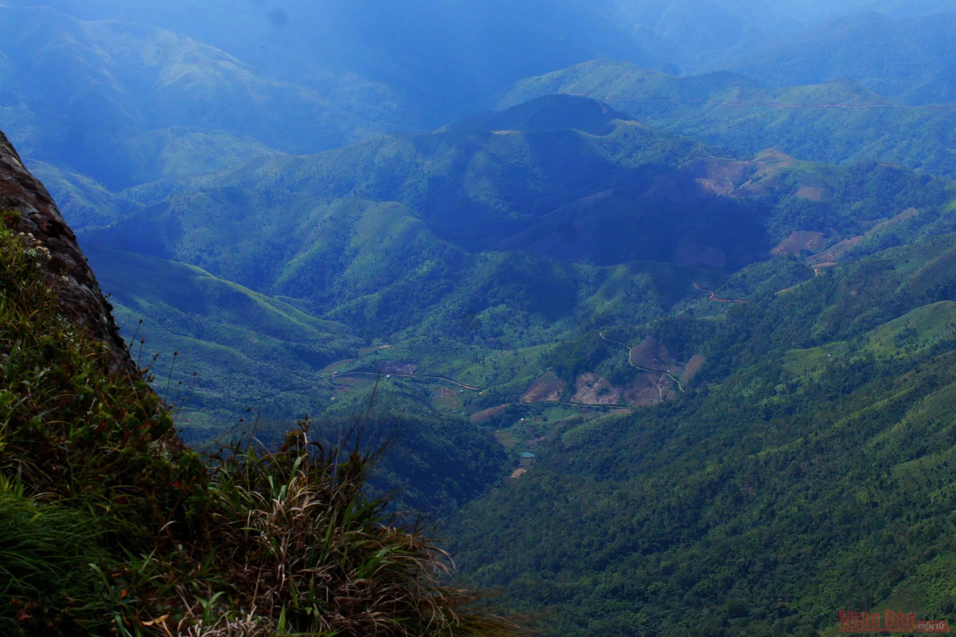 After four hours trekking across many different types of terrain, we finally reached the top of Pha Luong. And the reward for all that fatigue is that the natural scenery is so majestic on the top of this natural border mountain.