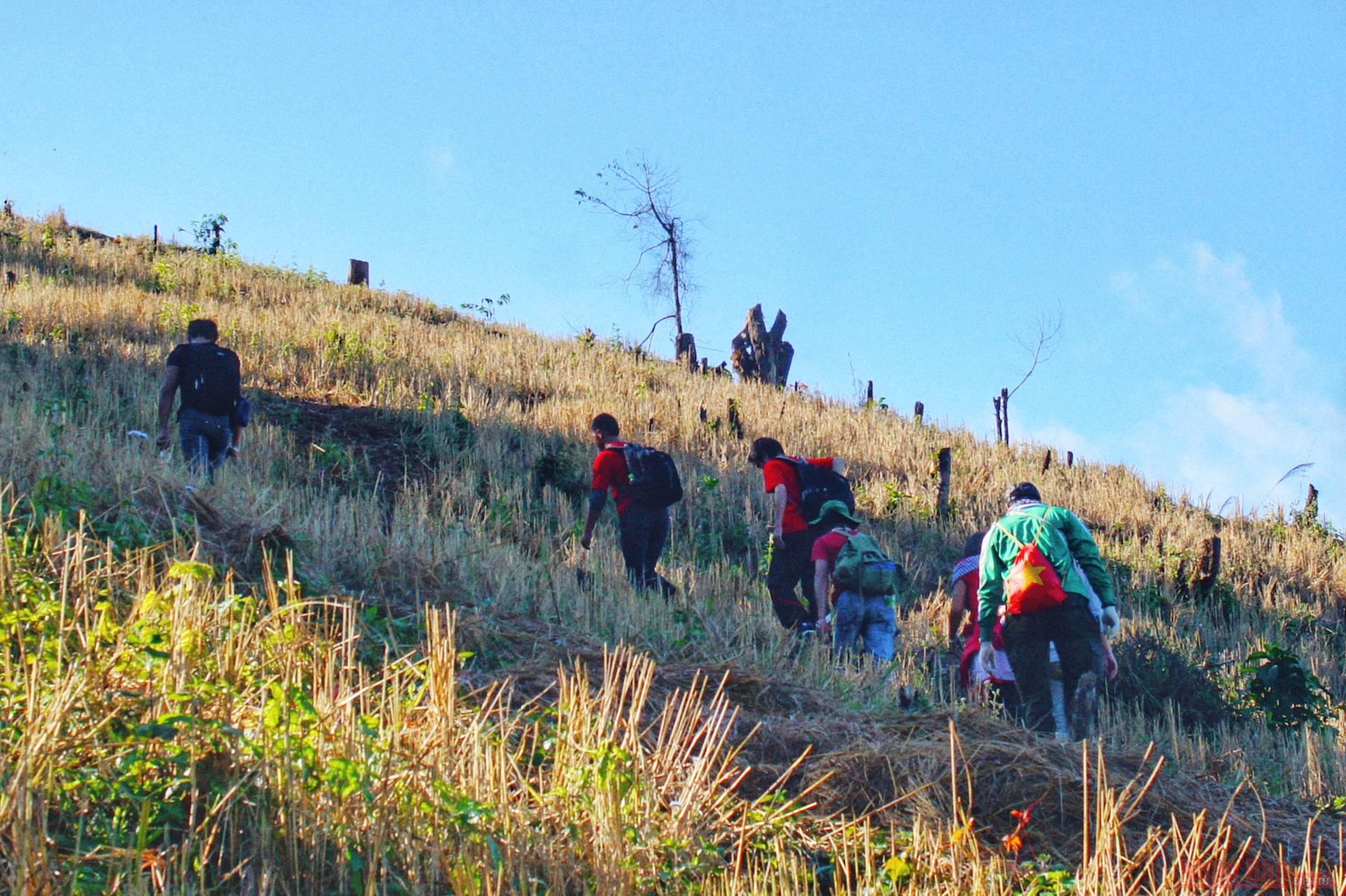 The early sunlight and it took a lot of effort for the difficult road to get to the station, so passing the thatched grass hill was also when we were tired. Fortunately, after that, the journey only went through the forest, so even though the climb was only up the slope but not down, the sun did not affect the footsteps of the group much.