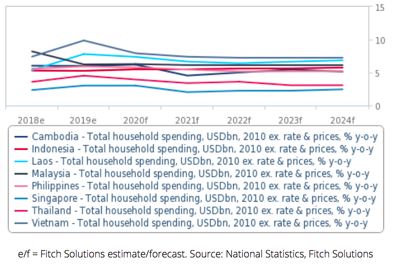 Consumer spending in Vietnam continues to expand and outpace its ASEAN peers as the country’s real household spending is predicted to grow by 7.9% year-on-year in 2020, a slight slowing on the 9.9% recorded last year, according to Fitch Solutions.