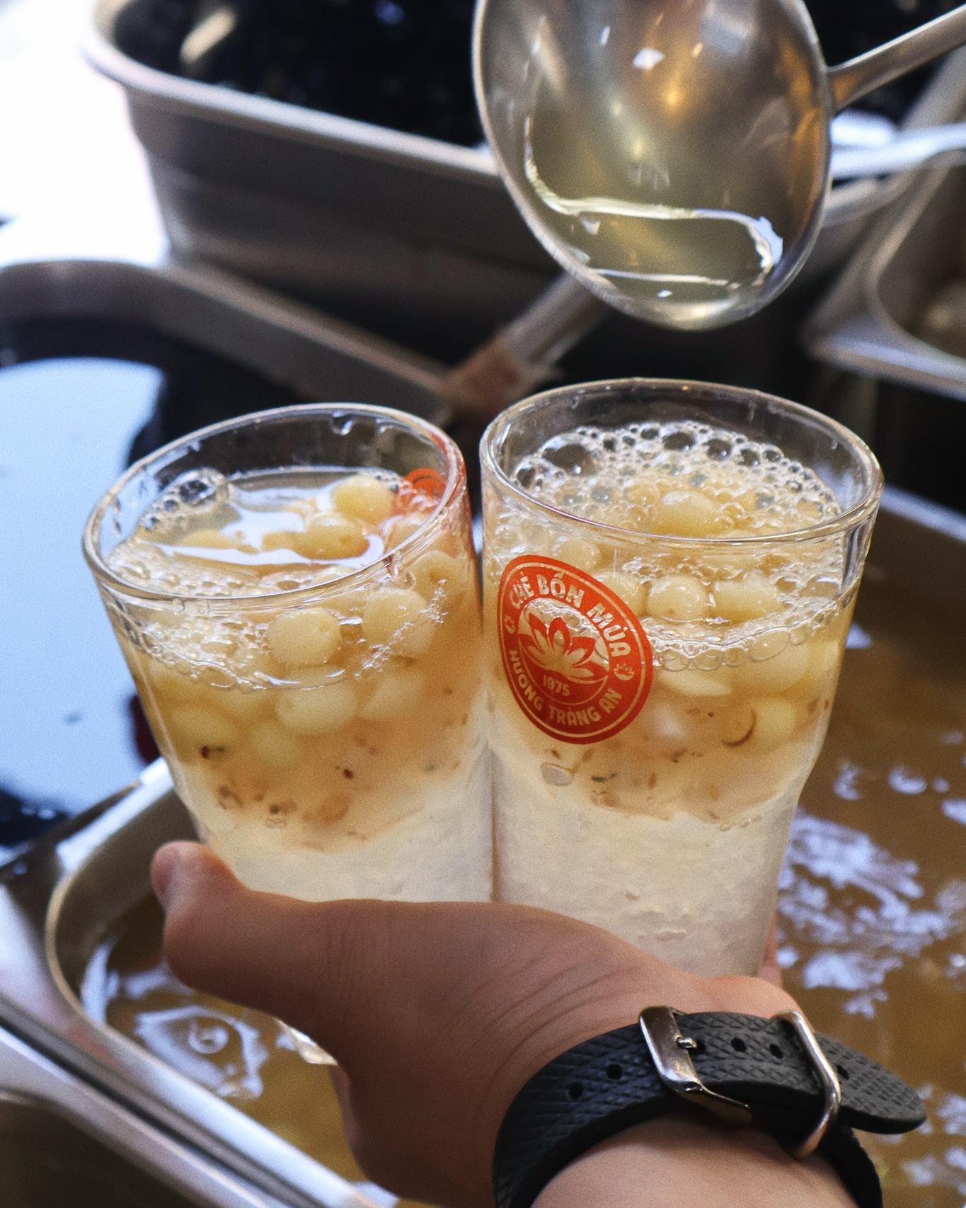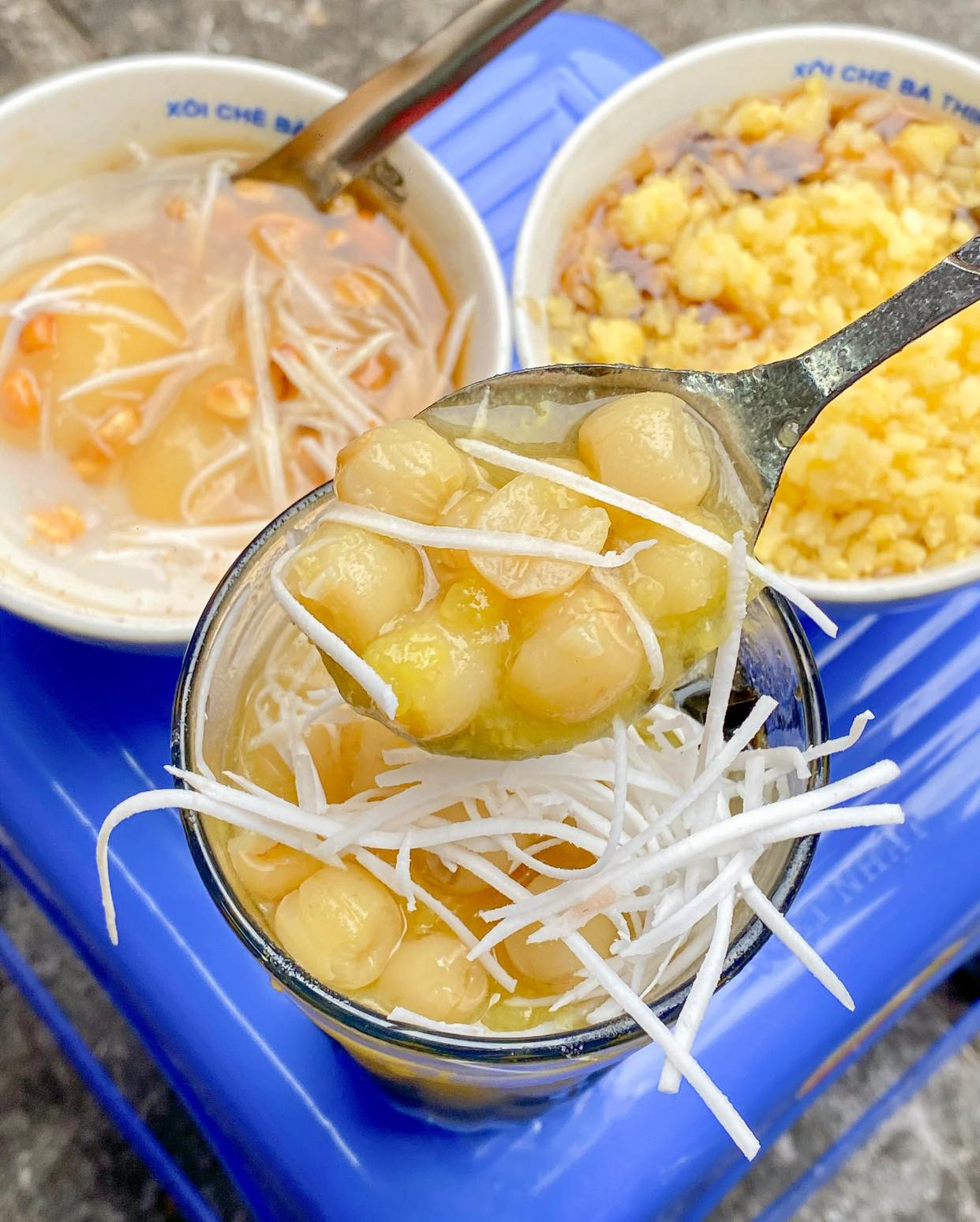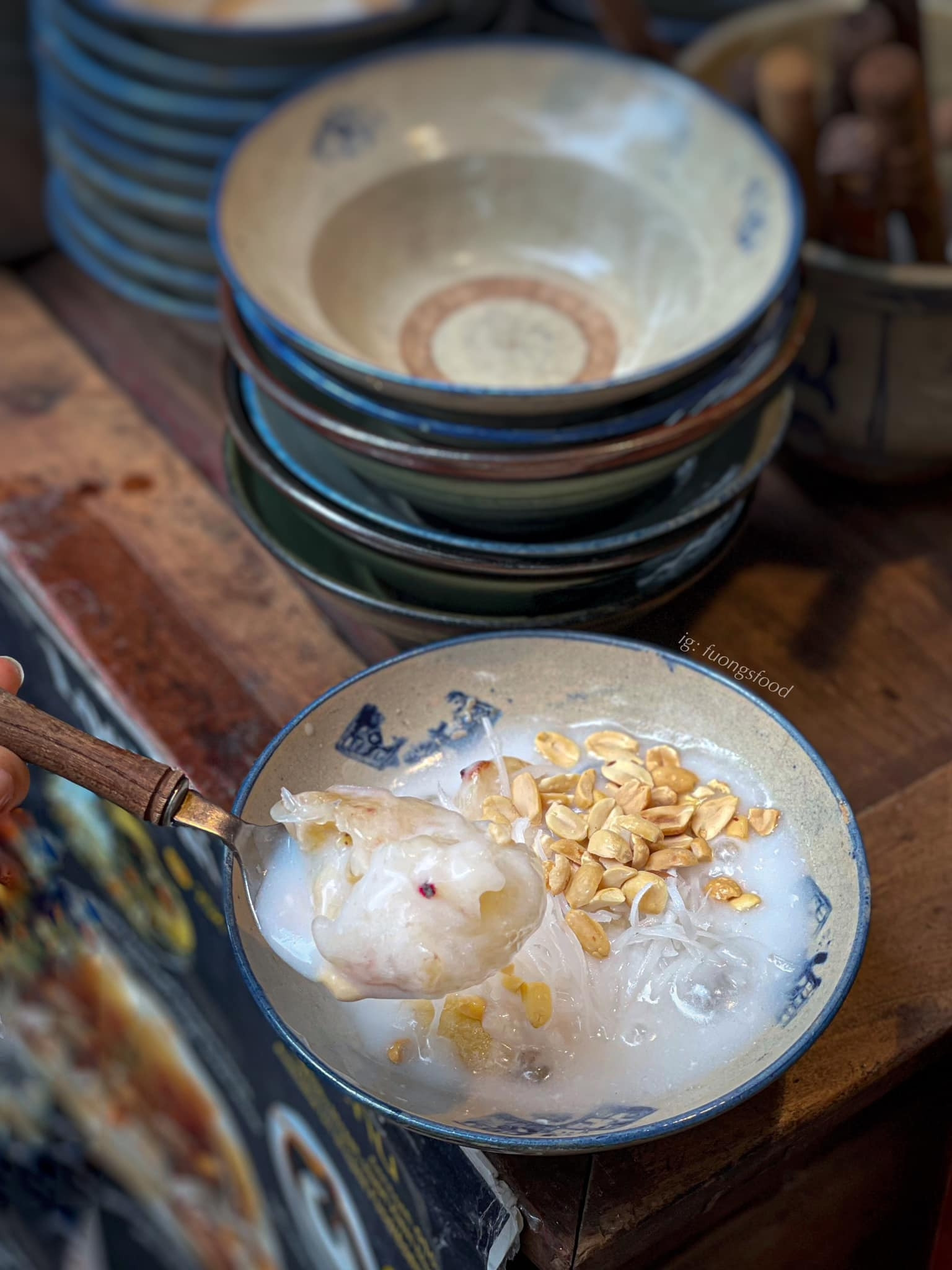 As one of the oldest sweet soup shops in Hanoi’s Old Quarter, this place is bustling year-round, serving classic varieties such as mung bean, black bean, lotus seed with longan and coconut, jelly with tapioca pearls, glutinous rice balls in ginger syrup, and brown rice porridge with ginger.