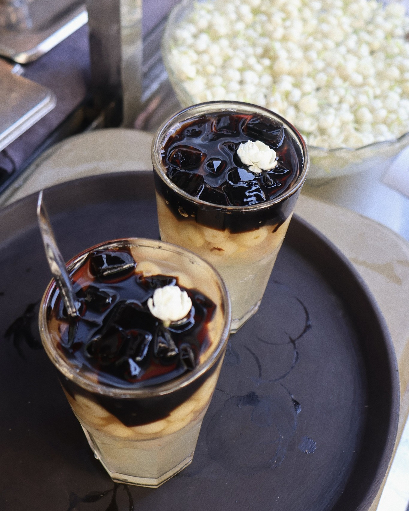 The mung bean soup with cassava flour and fragrant pomelo oil is a popular, mildly sweet option. Other refreshing dishes like black jelly with jasmine syrup or silky tofu pudding also make excellent choices for a hot day.