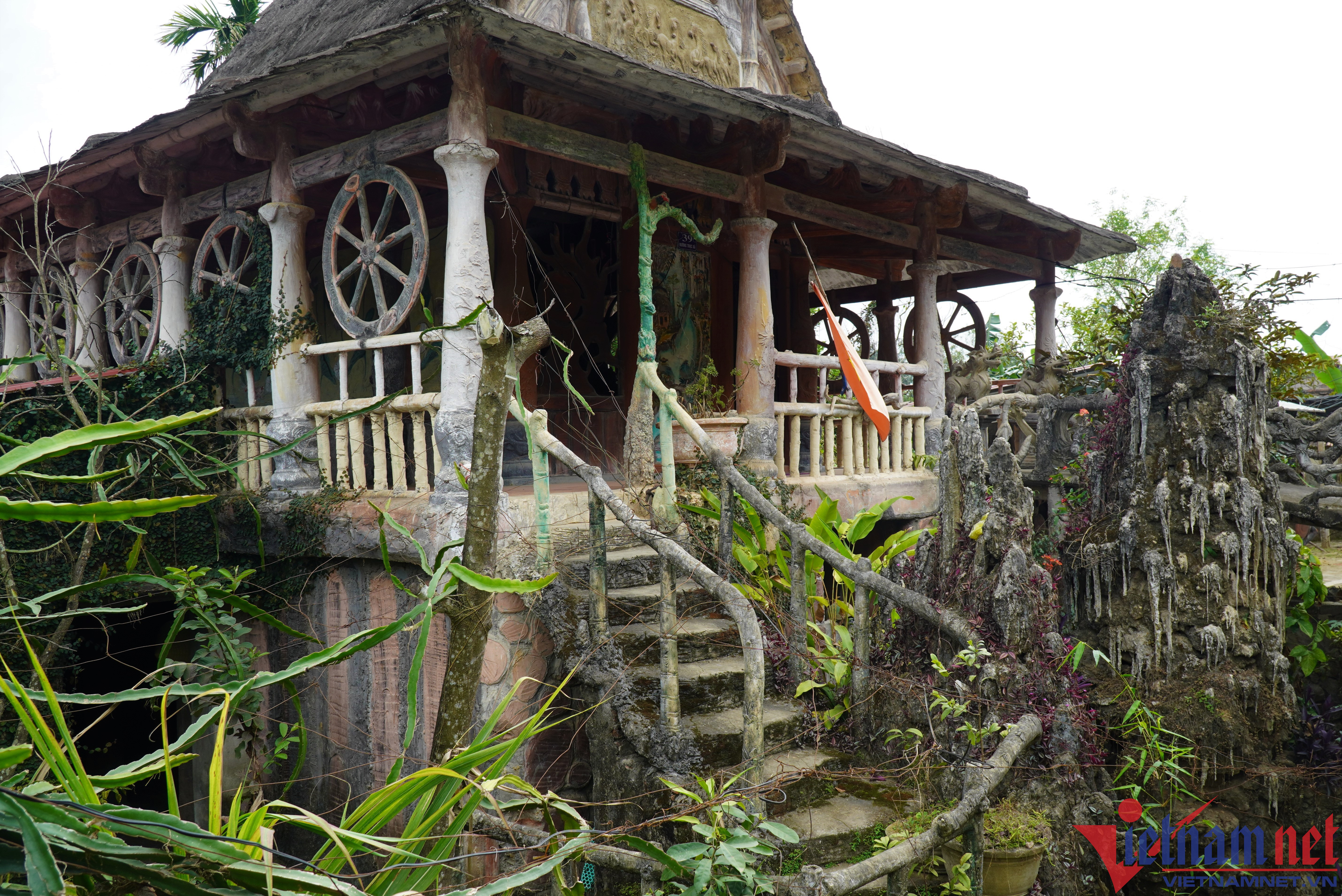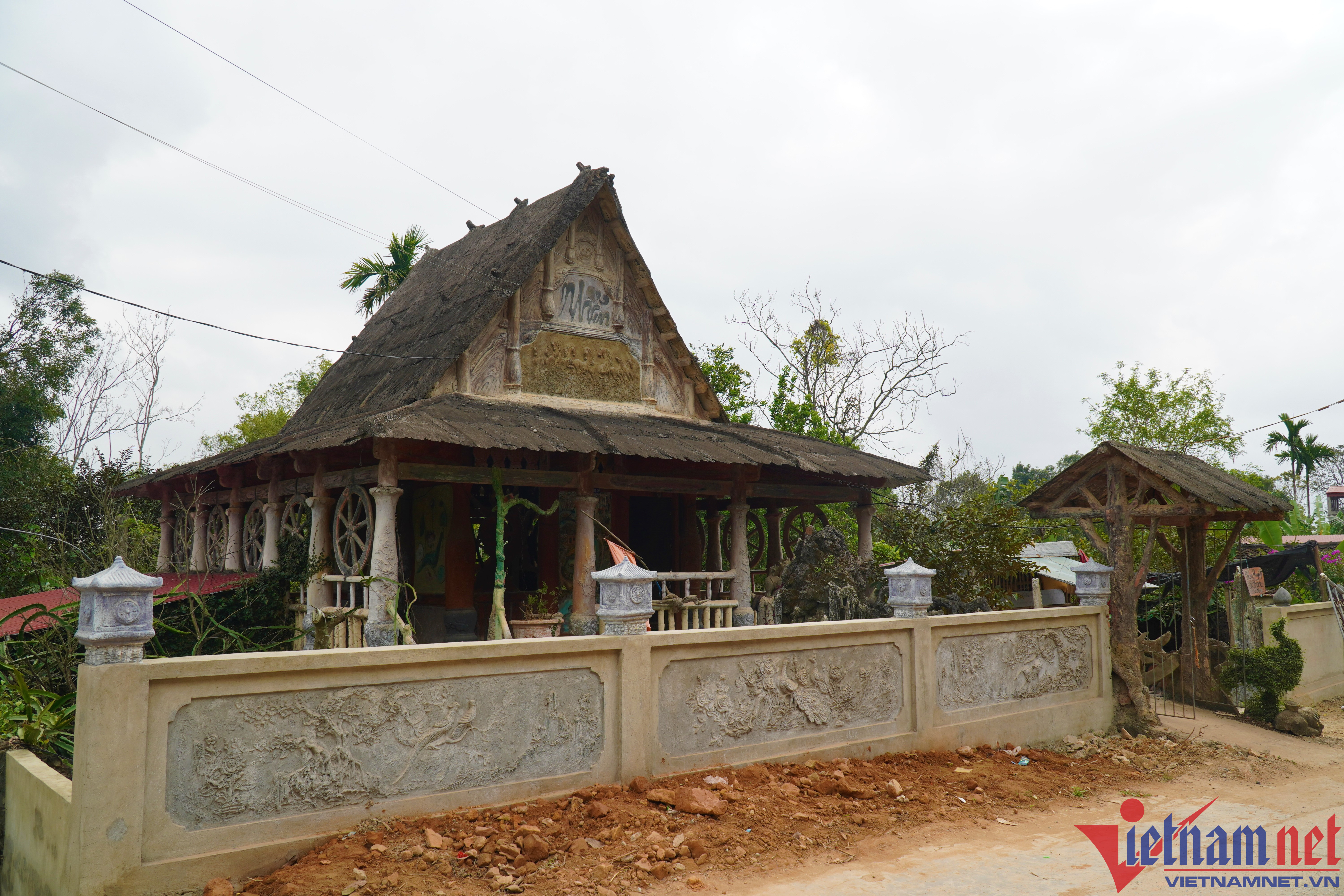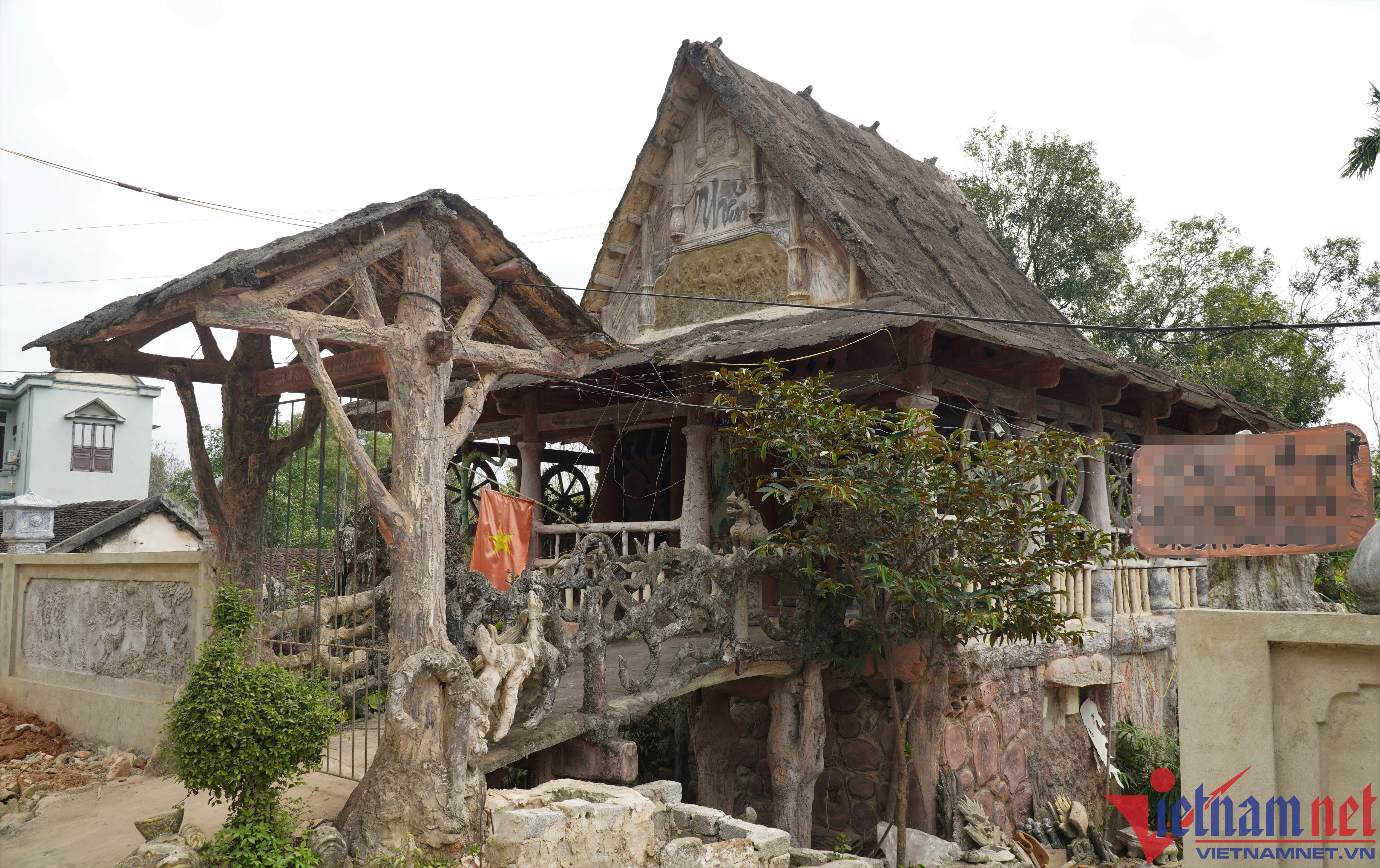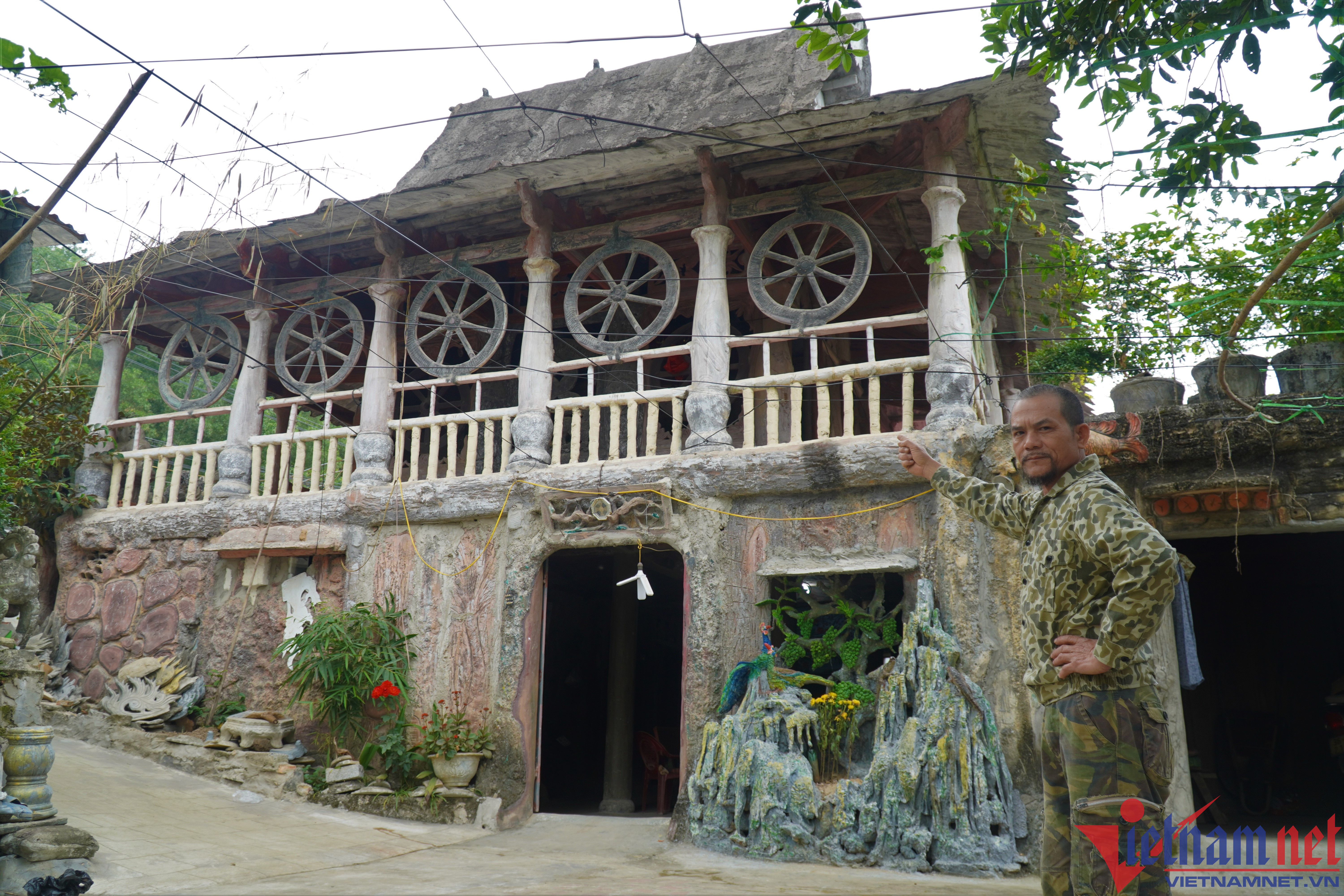 Tran Quang Giang, born in 1969, built the house near the center of the Commune People's Committee, which people liken to a house in a fairy tale. The house was designed by Giang, not following any blueprints or architectural style.