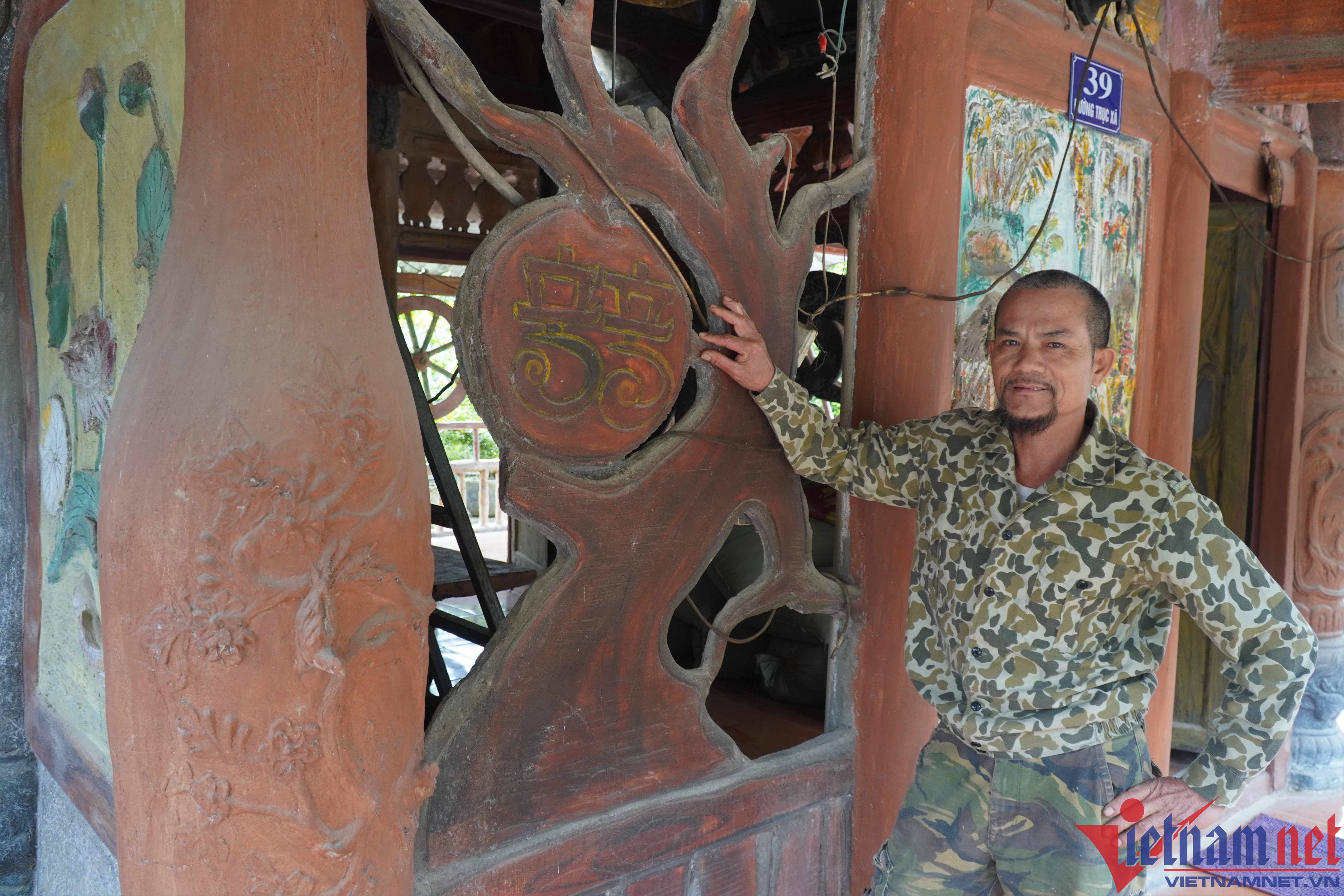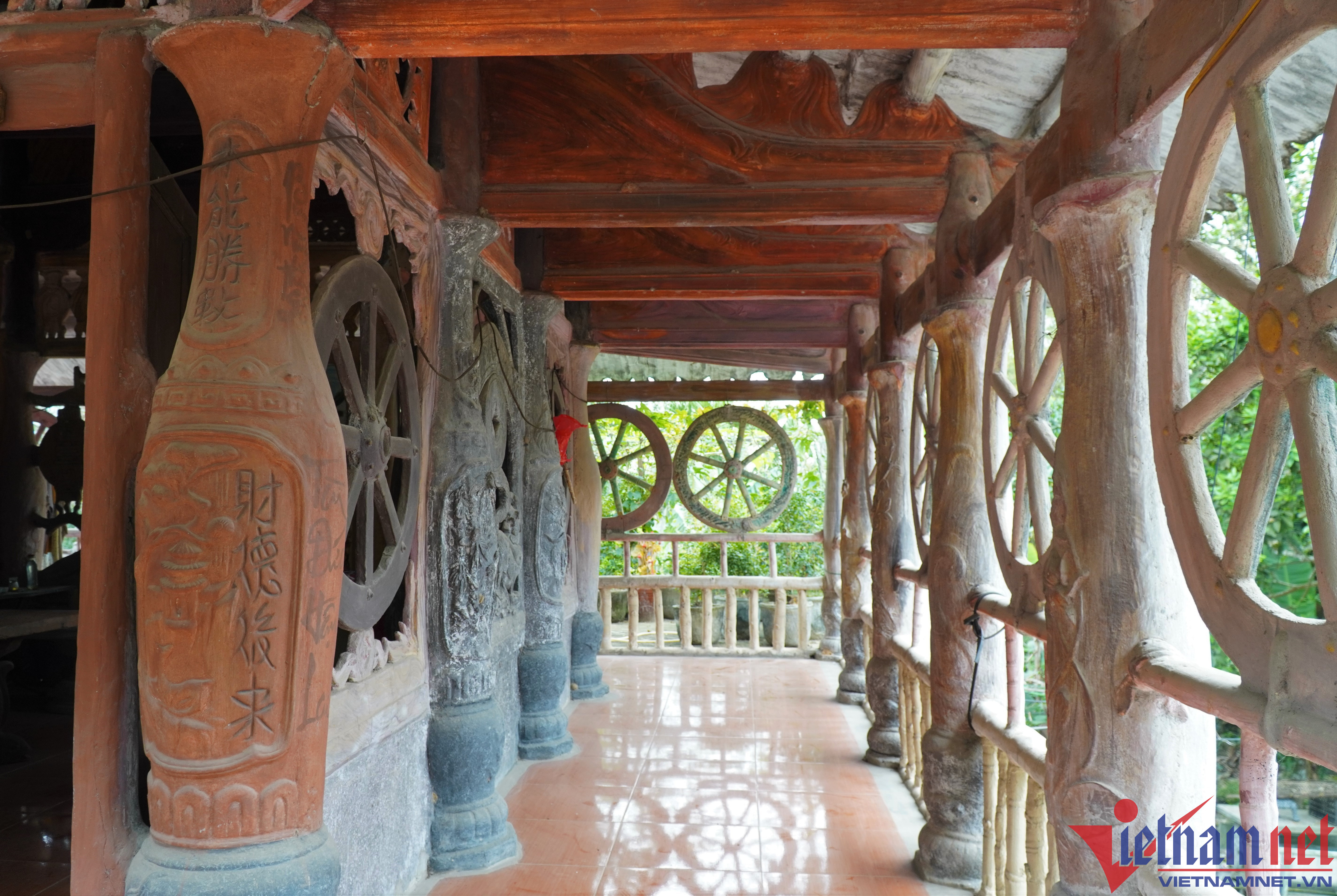 To complete the house, for five years he had to buy cement and steel for bending and casting each item and then assembling it. The house has 28 hyacinth pillars engraved with letters and patterns. The wall was also covered with reliefs representing the North, Central and South regions.