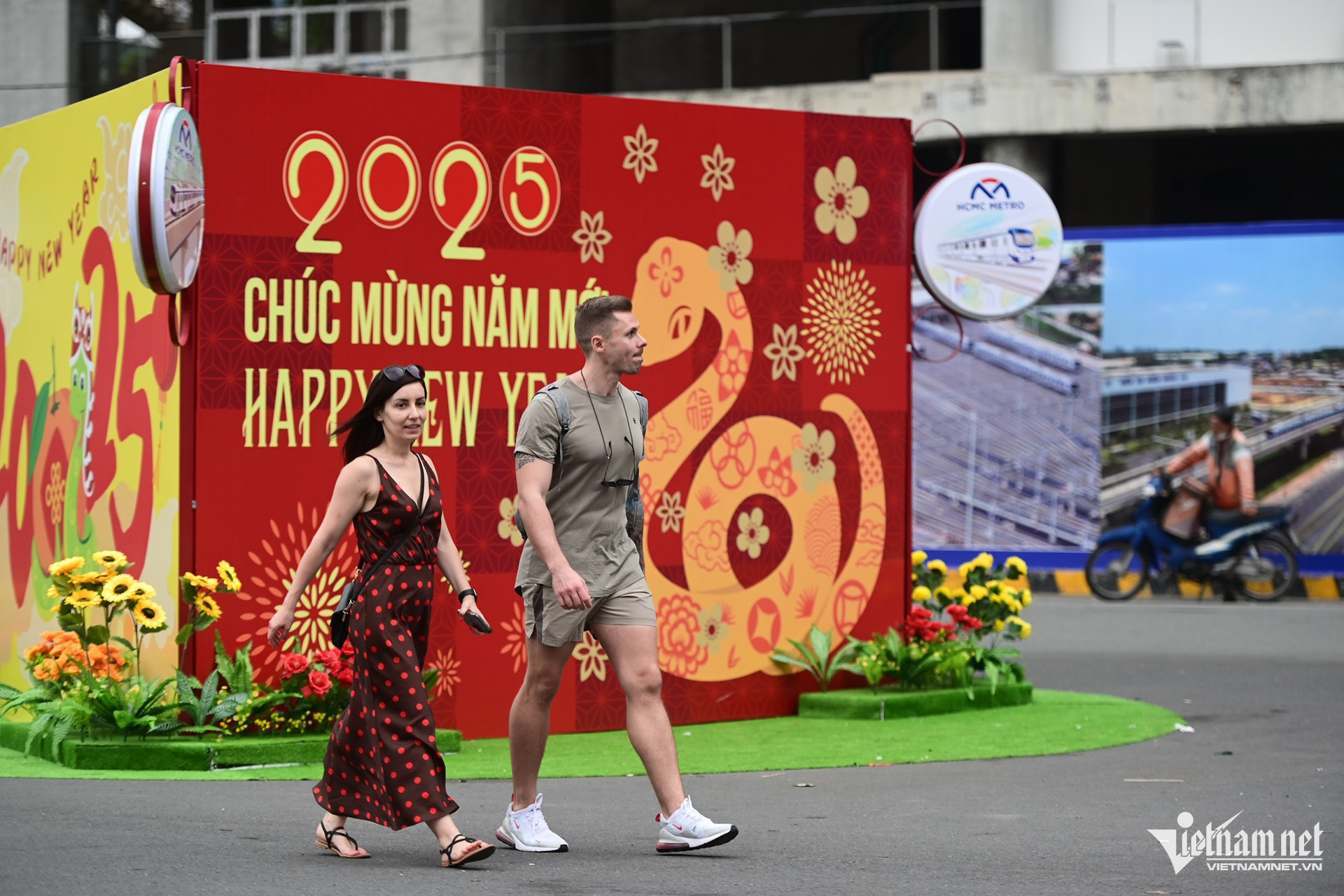 Nguyen Hue Walking Street, adorned with the charm of flocks of pigeons, exuded a peaceful yet festive atmosphere.Meanwhile, in Hanoi, parks such as Lenin Park on Dien Bien Phu Street were decorated with vibrant floral displays welcoming the new year.Major stages have been completed at key locations in both cities for tonight's celebrations.At Nguyen Hue Walking Street, Ho Chi Minh City will host a grand "Countdown Party 2025 – Live the Moment," featuring performances by renowned artists, including People's Artist Thanh Lam, Tung Duong, Soobin Hoang Son, Trong Hieu, ST Son Thach, Minh Hang, and the band Buc Tuong (The Wall).A similar stage has been set up at the Saigon River Park in Thu Duc City, drawing groups of young people eager to participate, despite official entry starting at 4 p.m.